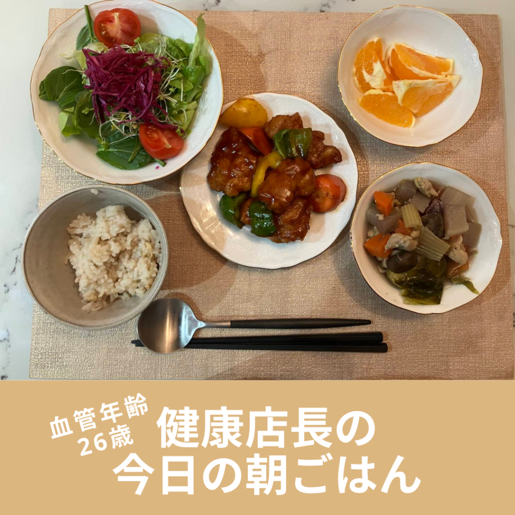 店長自身、日々の食事や運動、生活習慣を整えることで血管年齢26歳を維持しています。